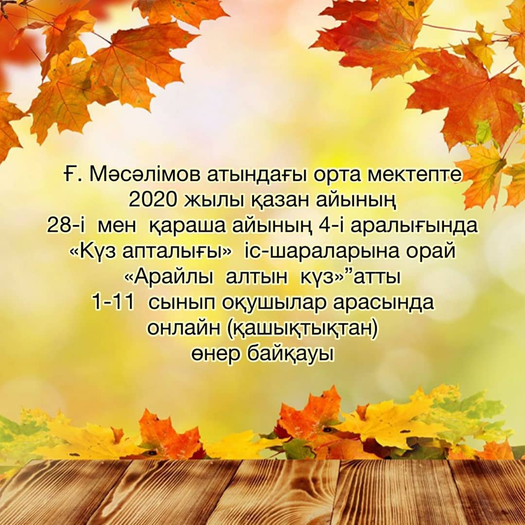 "Күз апталығы" іс - шараларының орай "Арайлы алтын күз атты онлайн онер байқауы"