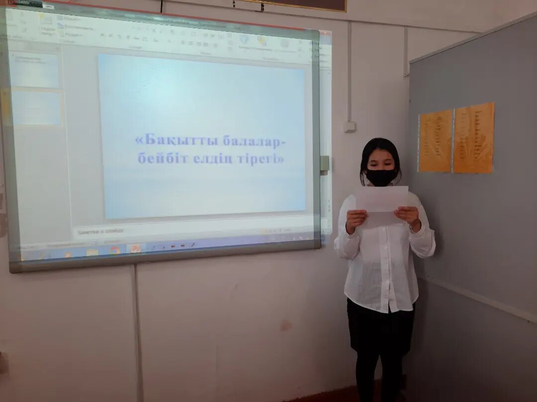Осыған байланысты жалпы білім беретін Ғибатолла Мәсәлімов атындағы орта мектеп КММ-де мектеп директорының тәрбие ісі жөніндегі орынбасарлары Хиясова Қойсын Құбашқызы мен Кадырова Бактыгүл Нәбенқызының, қазақ тілі пәні мұғалімдері Калимова Гулрауза Токтарбайқызы мен жас ұстаз Сыралиева Инабат Сыралықызының ұйымдасуымен 7"ә, б -сыныбы оқушыларына "Бақытты балалар- бейбіт елдің тірегі" тақырыбында эссе жазу жұмыстары жүргізілуде.