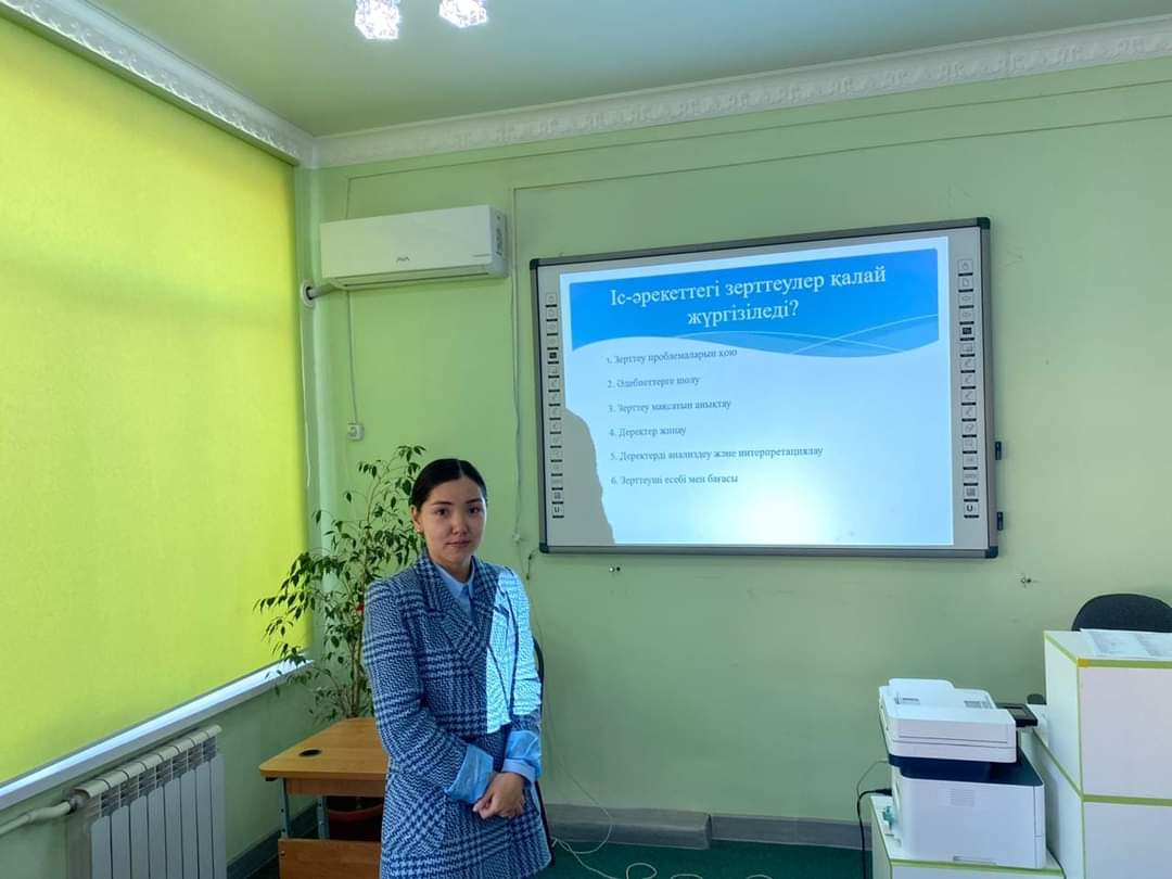 Бүгін Атырау облысы, Исатай ауданы, жалпы білім беретін Ғибатолла Мәсәлімов атындағы орта мектеп КММ - де Қазақ тілі және әдебиеті пәні мұғалімі, жоғары категориялы , тәжірибелі ұстаз Сапарова Мейрамгүл Мүтиғоллақызы мен жас ұстаз, аудандық, облыстық,Республикалық олимпиадаларға оқушы шығарып жүрген шығармашыл ұстаз Сүндетқалиева Гүлайна Бекежанқызының ұйымдастыруымен “Іс-әрекетті зерттеу” тақырыбында тәжірибе алмасу өтті. Шара барысында ұстаздар Lesson Stady әдісінде қолданылатын тиімді әрекеттерге тоқталды. Пікір алмасу барысында тәжірибелі ұстаздар оң бағаларын білдірді.